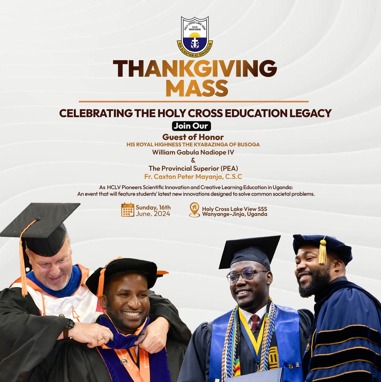 In the News, the Provincial Superior of the Congregation of Holy Cross, Province of East Africa Fr. Caxton Peter Mayanja, CSC, and His Royal Highness the Kyabazinga of Busoga Willian Gabula Nadiope IV will be at Holy Cross Lake View S.S.S – Wanyange Jinja (HCLV) to officiate a momentous Thanksgiving Mass and Launch the scientific innovation and Creative education program of the school an event that will see HCLV partner with its Alumnus Dr. Muwanika Idiobe to the strengthen the yearly Science Fare program of the school tailored to mentor student’s gifts and capabilities in science and innovation.